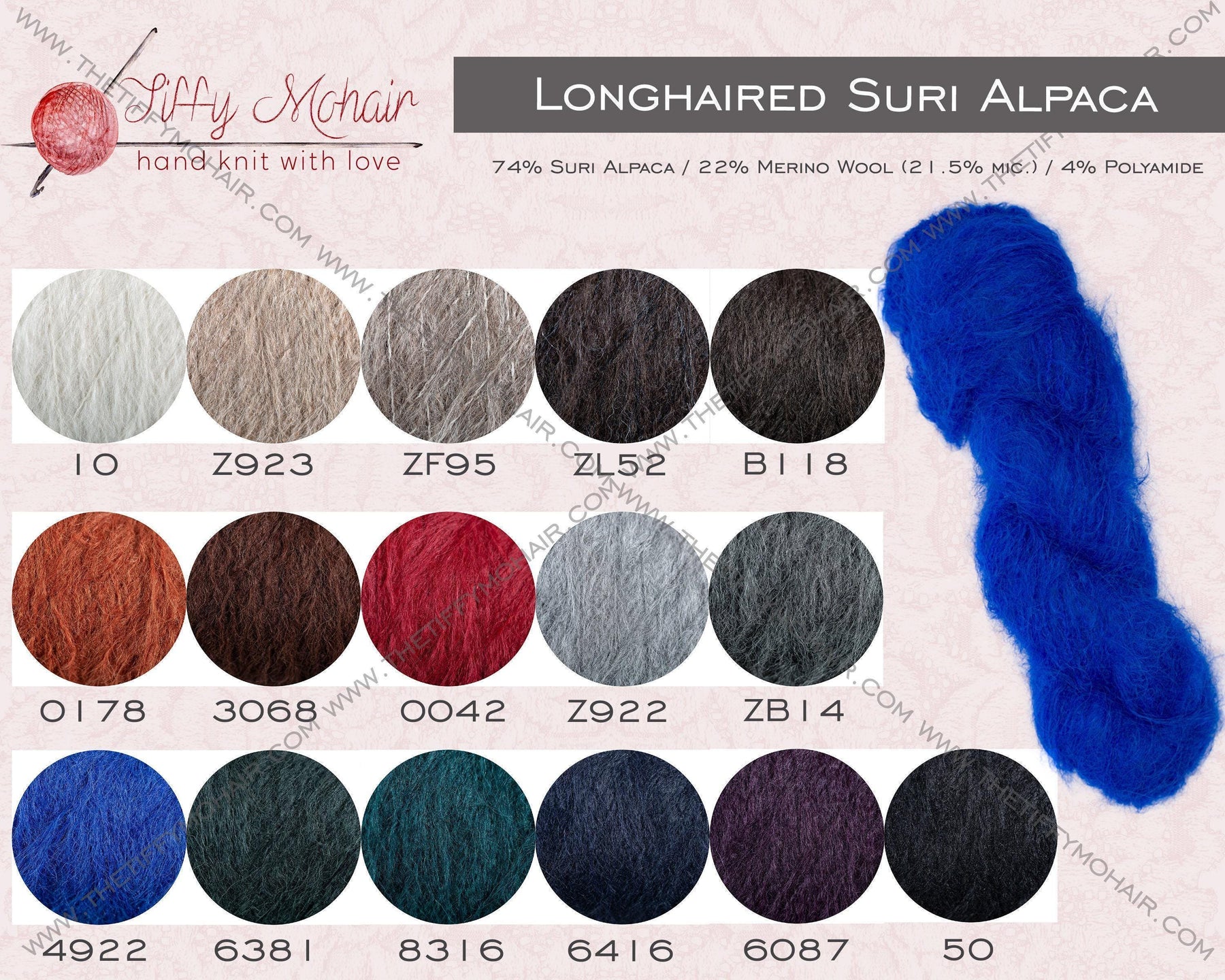MATERIAL : 1 strand of 74 % Long haired Suri Alpaca & 22 % Extrafine Merino Wool