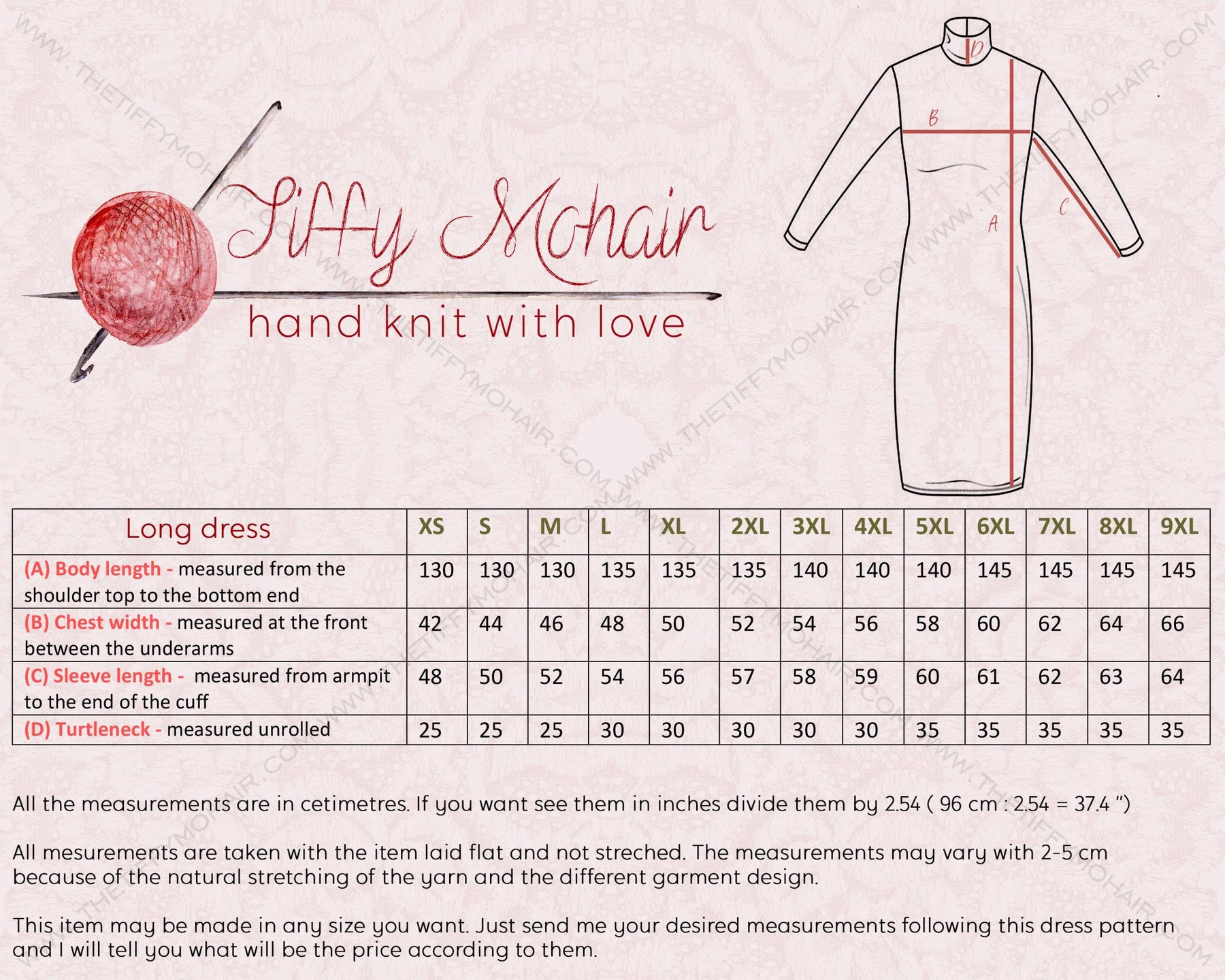 • Please keep in mind that measurements may differ by 2–5 cm because of the natural stretch of the yarn and the construction of the garment. Pieces made with more elastic yarns may vary by 2–10 cm.